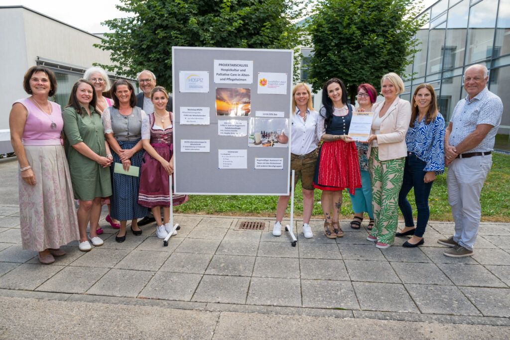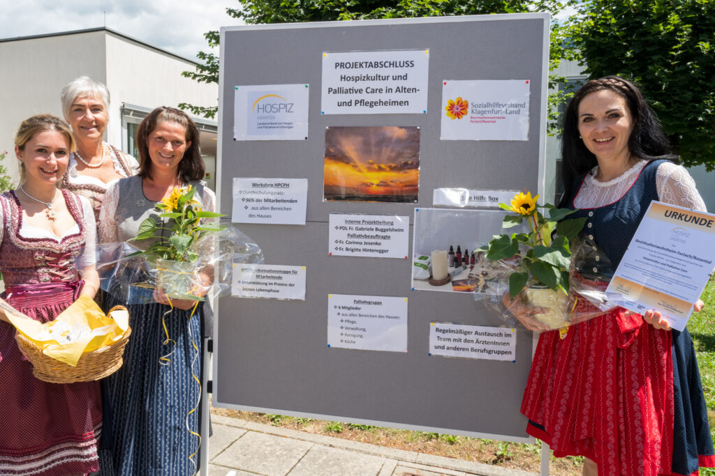 Im Rahmen des diesjährigen Sommerfestes erhielt das Bezirksaltenwohnheim Ferlach/Rosental die offizielle Urkunde für den erfolgreichen Abschluss des Projekts Hospizkultur und Palliative Care in Altenwohn- und Pflegeheimen (HPCPH) vom Landesverband Hospiz Kärnten. Mehr als ein Jahr lang setzten sich die MitarbeiterInnen des Hauses intensiv mit den Inhalten und Werten der Hospiz- und Palliativkultur auseinander. Ziel des Projekts war es, die Begleitung schwerkranker und sterbender Menschen sowie den Umgang mit deren Angehörigen noch stärker in den Mittelpunkt zu rücken.